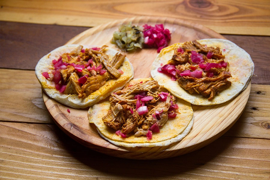 - Alambre de res con chile marrón, cebolla, tocino y queso