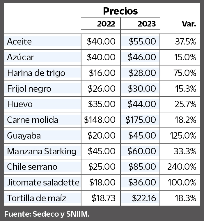 Si bien al cierre de 2022 la inflación general anual se ubicó en 7.82%, la realidad en las calles es que muchos productos tuvieron alzas hasta de dos dígitos que presiona los bolsillos de los hogares al arranque de 2023.