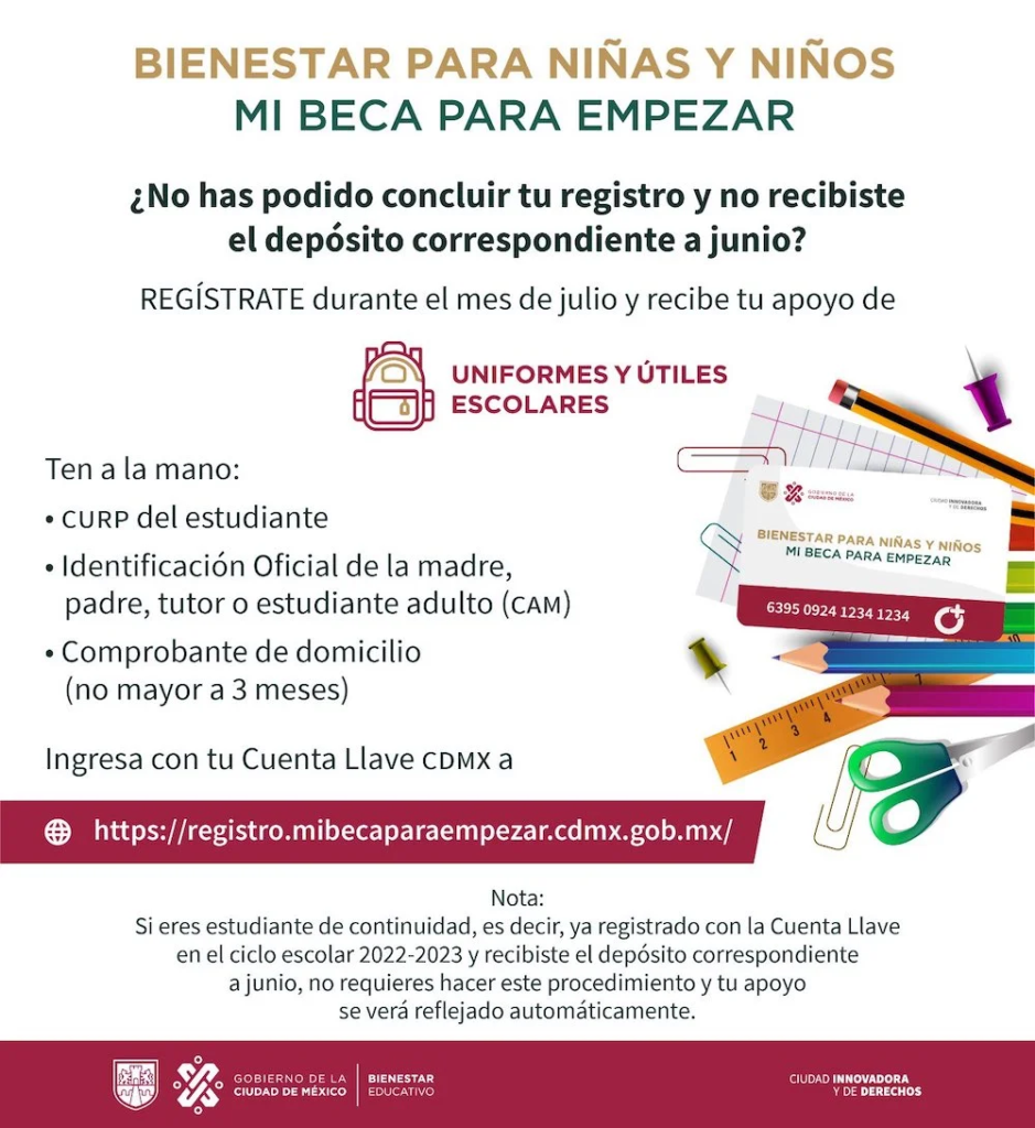 Sobre todo porque para este ciclo que viene (2023-2024) hubo un aumento importante de los recursos, además de que el gobierno de CDMX extendió las fechas de registro hasta el 31 de julio de este 2023.
