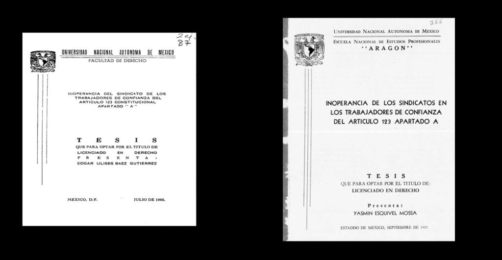 A la izquierda ven la foto de la tesis de Báez Gutiérrez en 1986, a la derecha la de Yasmin Esquivel en 1987