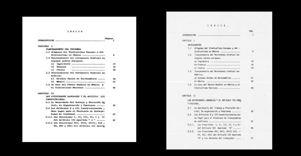 Aunque tienen diferente tipo de letra —en defensa de la actual ministra Yasmin Esquivel—, todos los demás apartados son completamente idénticos. Un ejemplo particularmente genial es ver cómo Esquivel buscó también la Trascendencia del Movimiento Sindical en los mismo tres países que presentaba el Lic. Báez Gutiérrez un año antes.