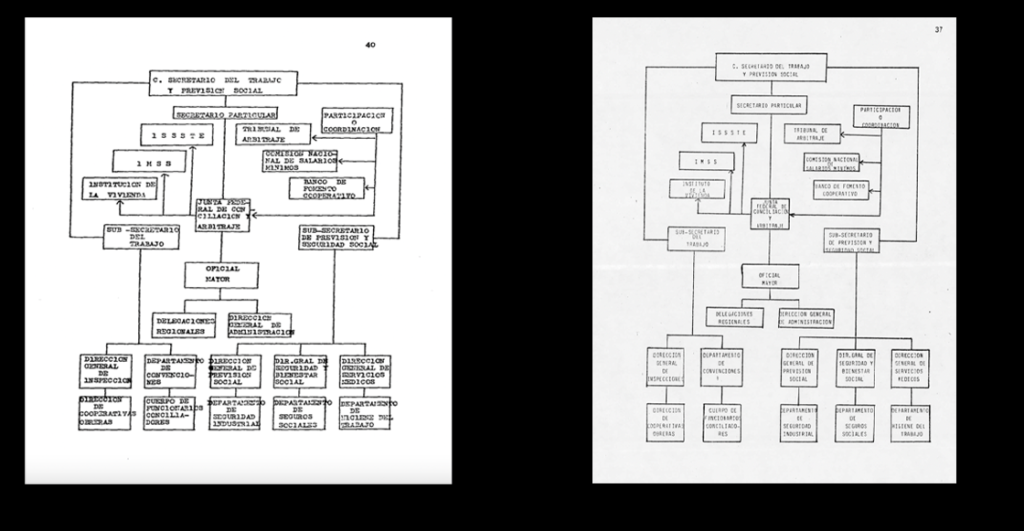 El cuadro habla de los órganos, funciones y personal de la Secretaría del Trabajo. Échenles un ojo. Igual que arriba, a la izquierda el trabajo de 1986, a la derecha el trabajo de la actual ministra de la SCJN en 1987.