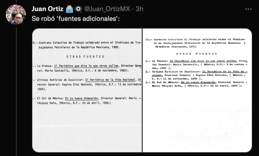 Después de la publicación de Guillermo Sheridan que destapó todo este caos, muchos periodistas se echaron un clavado para encontrar más y más momentos tremendos en el plagio de la ministra Yasmín Esquivel Mossa. Así fue como Juan Ortíz (@Juan_OrtizMX) vio que se voló hasta las fuentes adicionales.