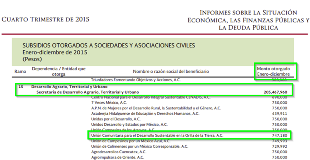 En 2015 la Secretaría de Desarrollo Agrario les otorga $ 747,180