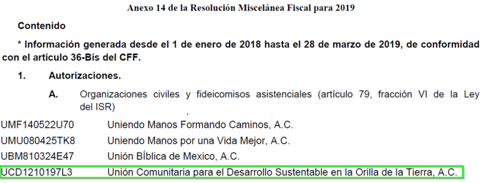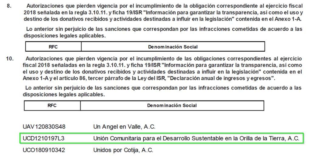 En el DOF correspondiente al 14 de Mayo 2020 se notifica la pérdida de Vigencia de la AC por incumplimientos del Ejercicio Fiscal 2018 por 2 motivos: