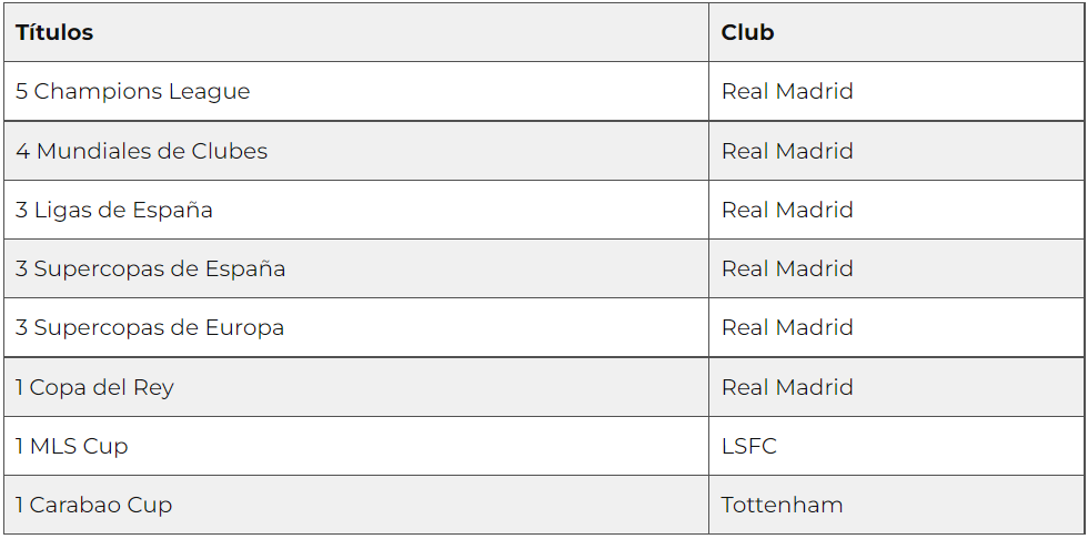 A mis clubes anteriores, Southampton, Tottenham, Real Madrid y finalmente LAFC. Todos mis anteriores directivos y entrenadores, personal de la sala trasera, compañeros de equipo, todos los fans dedicados, mis agentes, mis increíbles amigos y familia, el impacto que han tenido es inconmensurable.