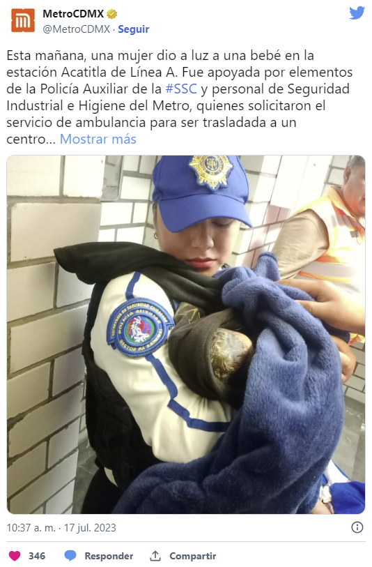 La mañana de este lunes una mujer dio a luz en la estación Acatitla de la Línea A del Metro de la Ciudad de México (CDMX) después de sufrir un fuerte dolor abdominal y requerir el auxilio de personal del servicio de transporte capitalino.