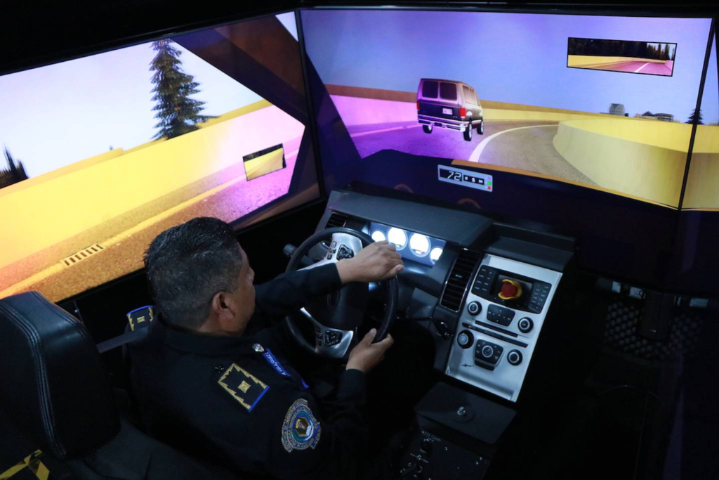 *Simulador de Manejo de Vehículos Auto Patrulla (SIMAVAP). Opera como una herramienta de entrenamiento para desarrollar y fortalecer las habilidades cognitivas y psicomotrices mediante la exposición del participante a situaciones básicas de operación de la unidad, así como a situaciones urgentes y de persecución en las que se consolidan, en contextos controlados, las habilidades y destrezas de las y los participantes, al experimentar virtualmente aspectos de la operatividad en campo.