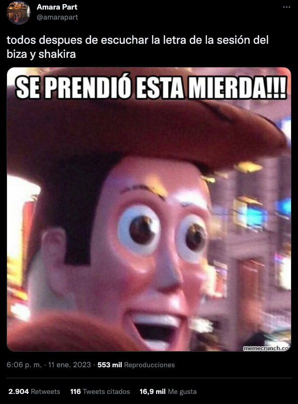 Bueno, como mencionamos arriba, la Bizarrap Session de Shakira no tuvo (tantos) filtros y al mero estilo de un diss-track de rap, tiró versos sin piedad. Por supuesto, los memes y las reacciones no faltaron. El internet una vez más se puso creativo, así que acá les traemos algunos memazos picositos sobre la rola lanzada por ambos artistas sudamericanos.