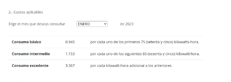 Las cifras tarifarias pueden consultarse en el sitio de internet de la empresa que provee el servicio de luz a gran parte del país y ahí se detalla cada una respecto al tipo de consumo de energía eléctrica. Cabe destacar que el gobierno ha puesto en marcha un plan para contrarrestar que los efectos inflacionarios golpeen el bolsillo de los mexicanos mediante un subsidio al servicio eléctrico.